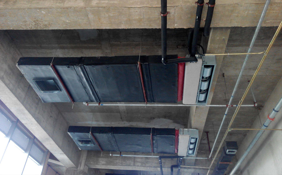 卧式暗装机组的回风有两种方式:在顶棚上设百叶或其他形式回风口和风口过滤器,用风管接到机组的回风箱上,不设风管,室内空气进入顶棚,再被置于顶棚上的机组所吸入。风机盘管机组只作为舒适性空调使用,切勿用于特殊场合。